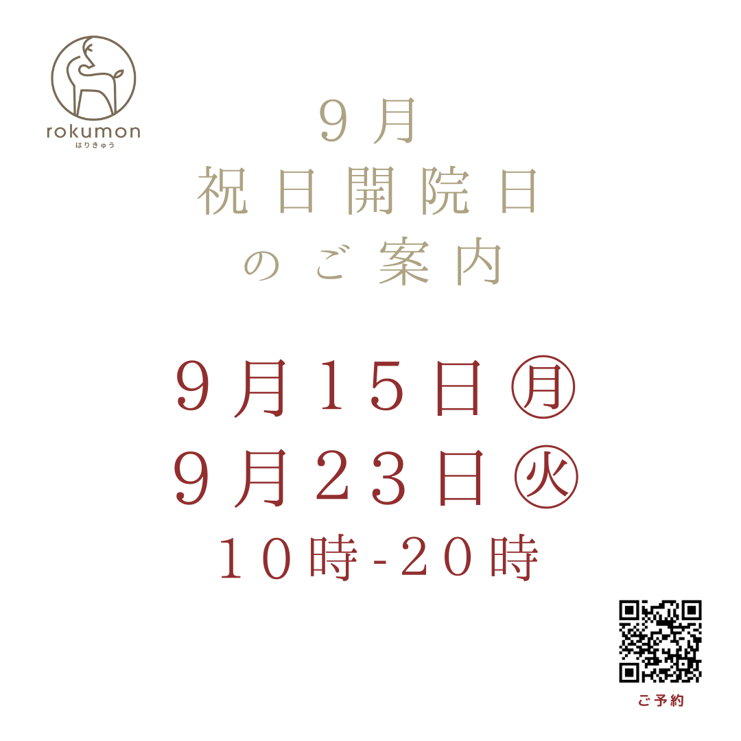 さらに、9月はもう1日、祝日(9月23日・火曜日)がございますが、その日も通常通り開院しております。