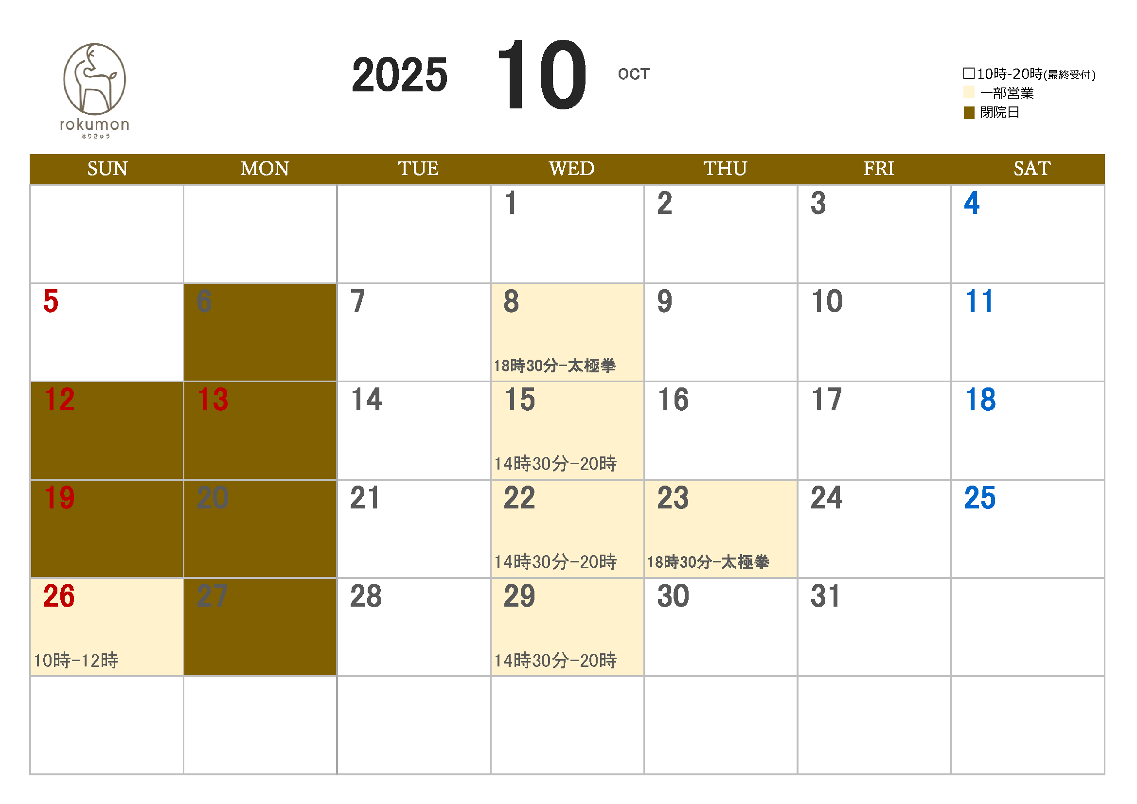 10月は下記の通り開院しております✨