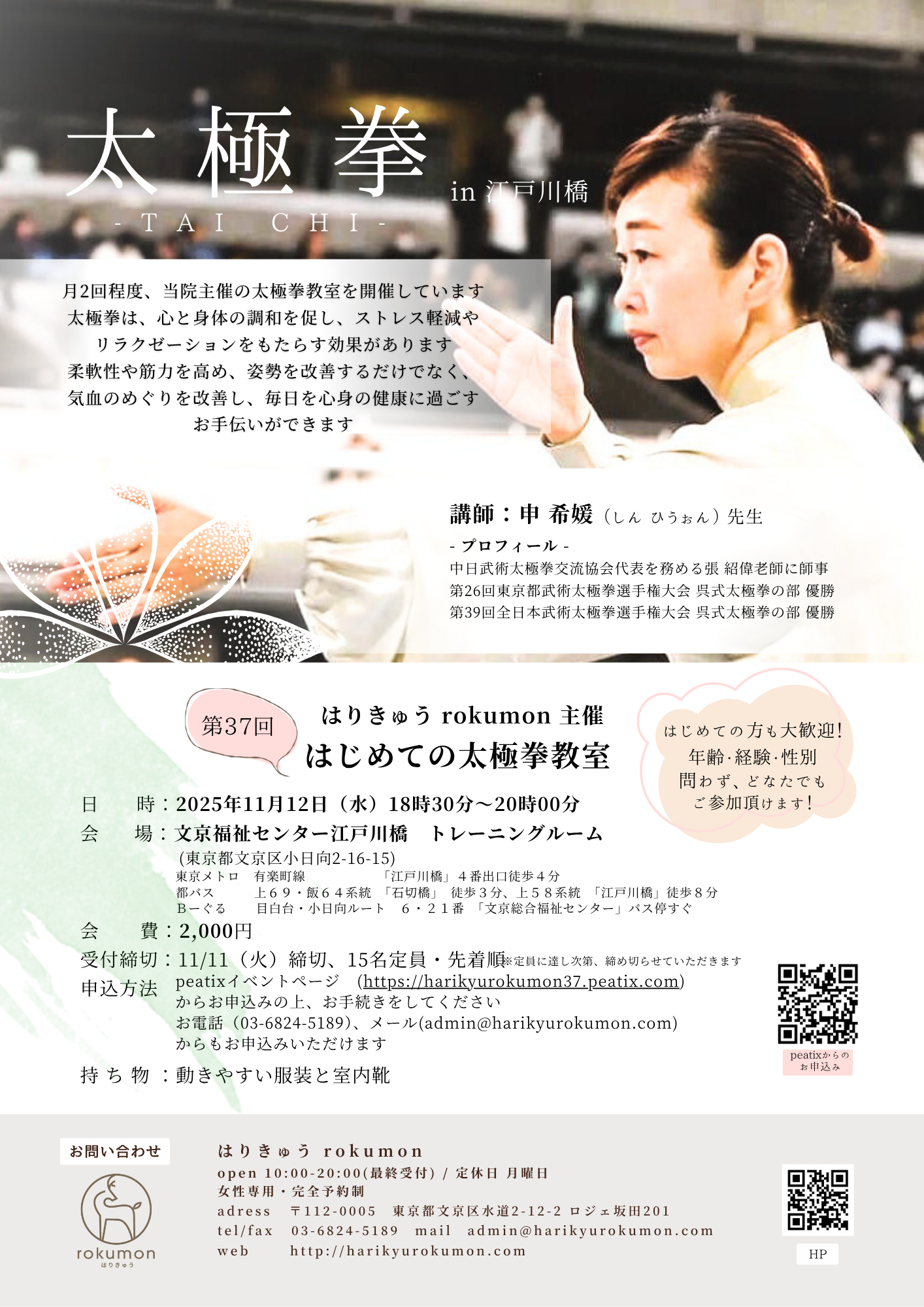 お電話(03-6824-5189)、メール(admin@harikyurokumon.com)、公式LINE(https://lin.ee/TD8SVXm)からもお申込みいただけます。
